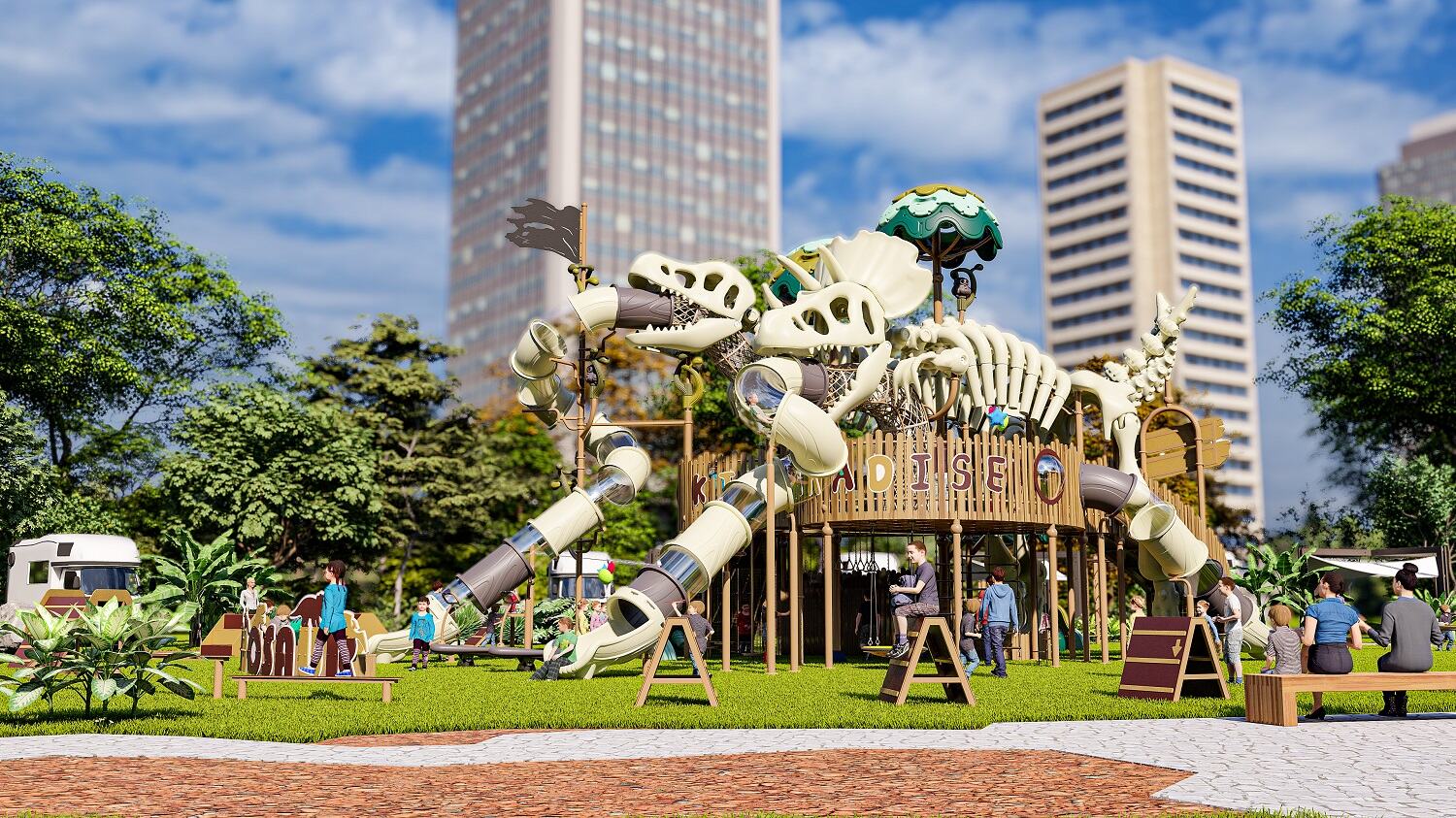 The Bone Dinosaur playground encourages imaginative play, allowing kids to create their own dinosaur adventures. Whether they are pretending to be explorers, paleontologists, or prehistoric creatures, this playground sets the stage for endless creativity and fun.