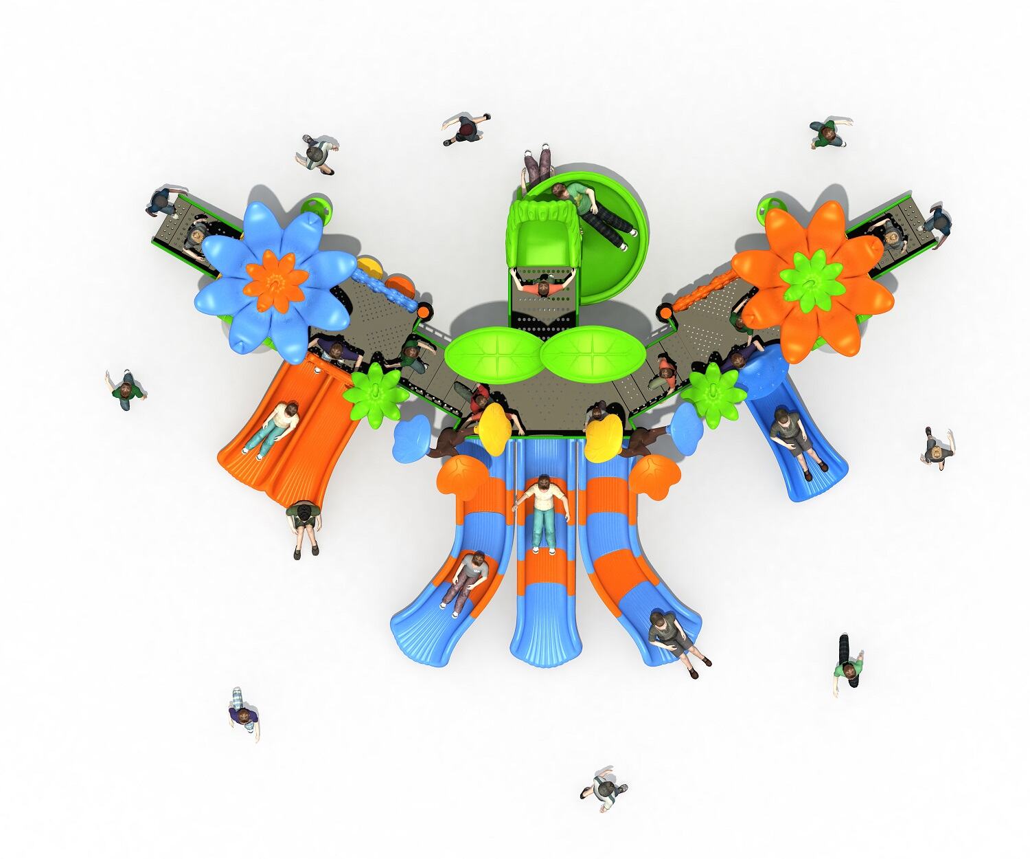 Every product meets or exceeds international safety standards (ASTM, EN 1176). We integrate anti-slip surfaces, rounded edges, shock-absorbent flooring compatibility, and secure fastening systems to minimize fall risks—keeping kids safe while they play, and giving park operators peace of mind.