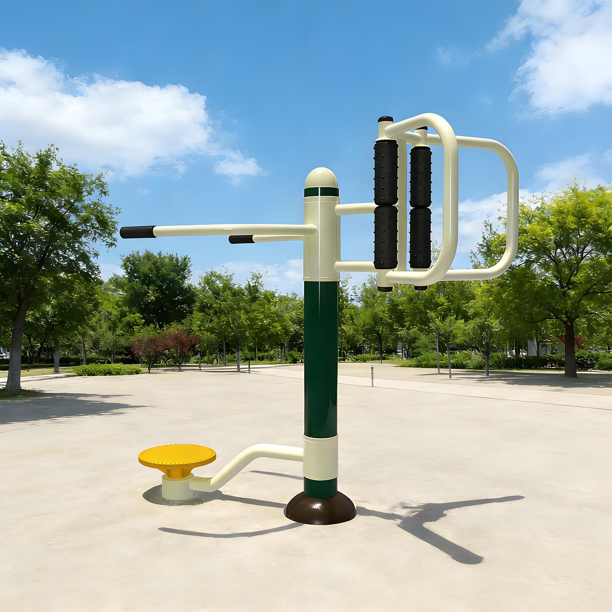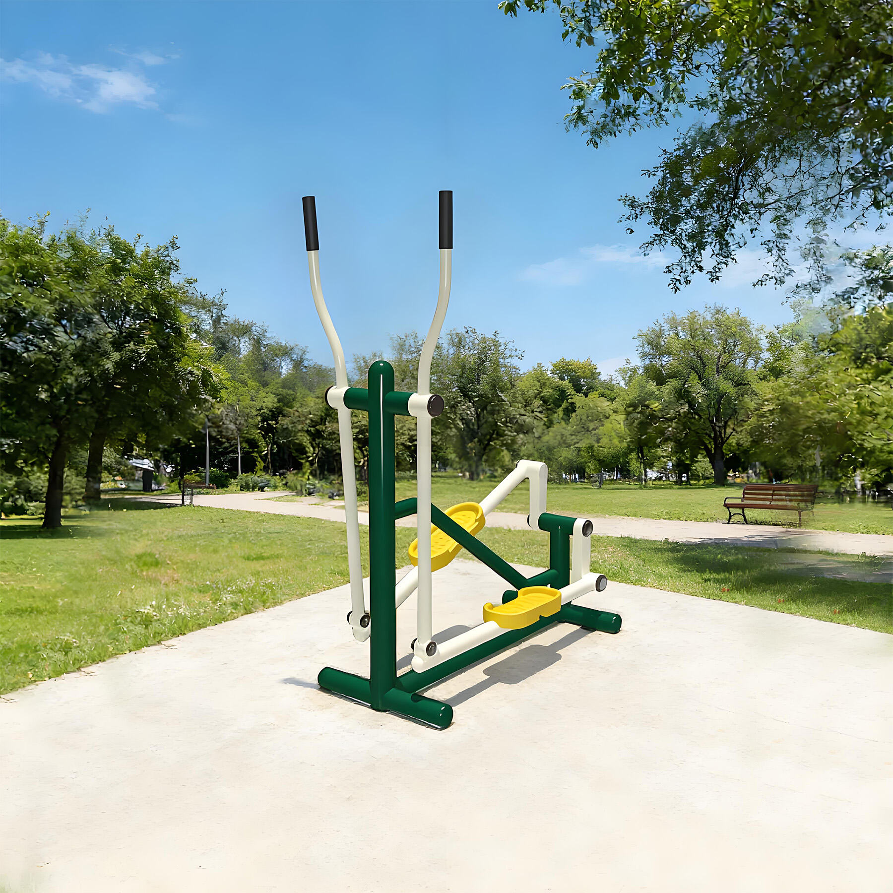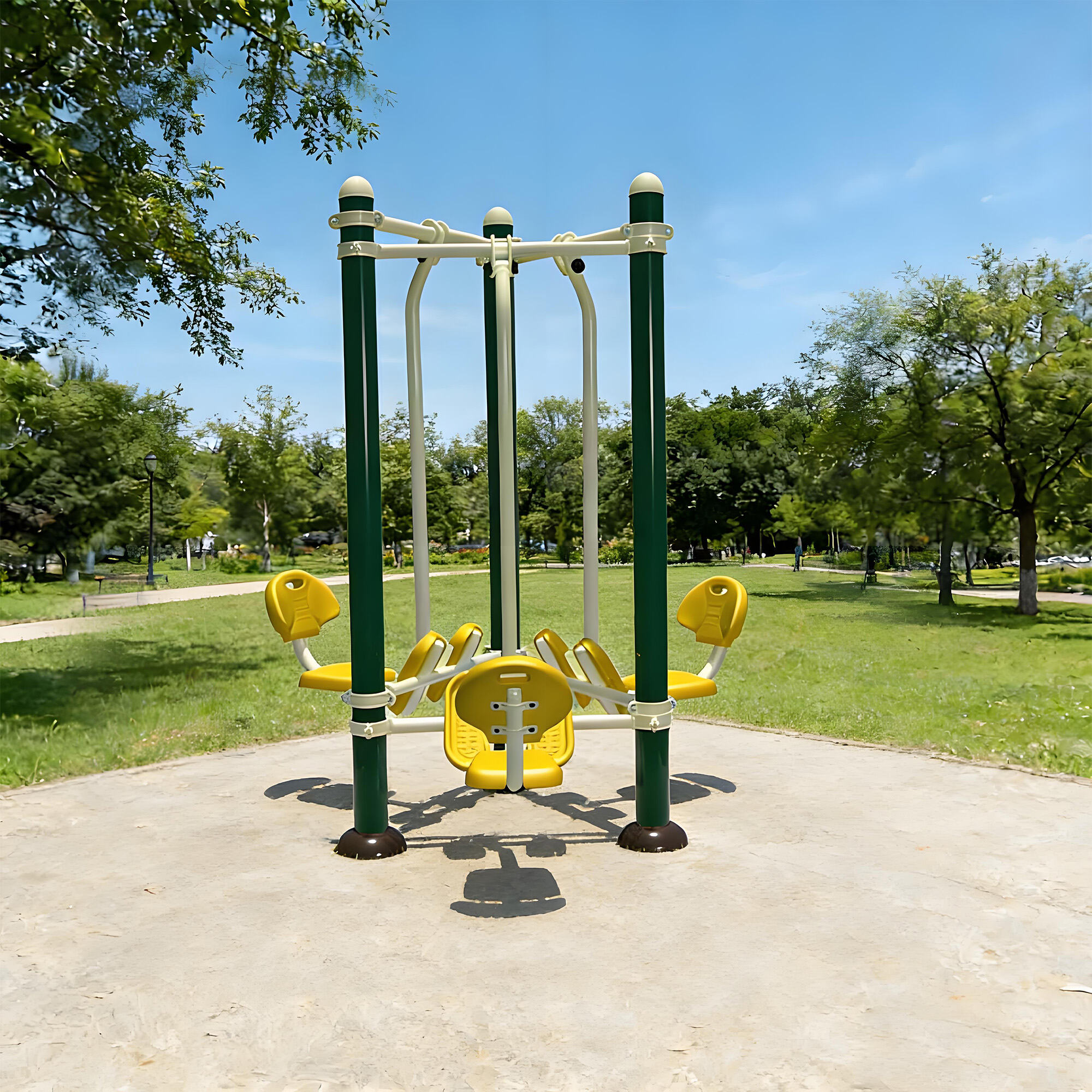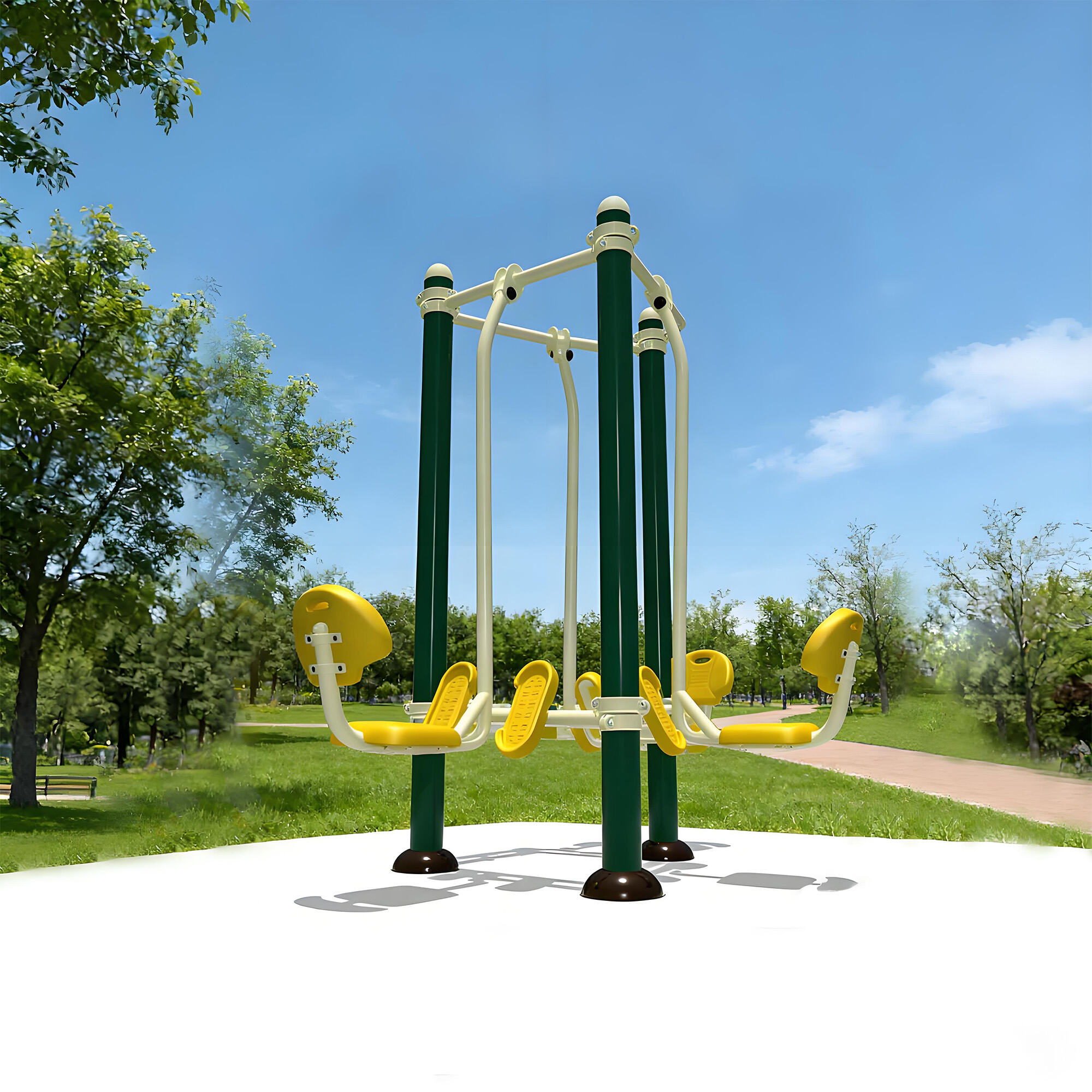 Core components are made of galvanized steel pipes and weather-resistant eco-friendly plastics, with surfaces treated by electrostatic powder coating and multi-layer anti-corrosion processes. They withstand sun, rain, and temperature fluctuations, remaining rust-free, colorfast, and crack-free over long-term outdoor use. Solid craftsmanship ensures structural stability even under frequent use, providing reliable, long-lasting fitness support.