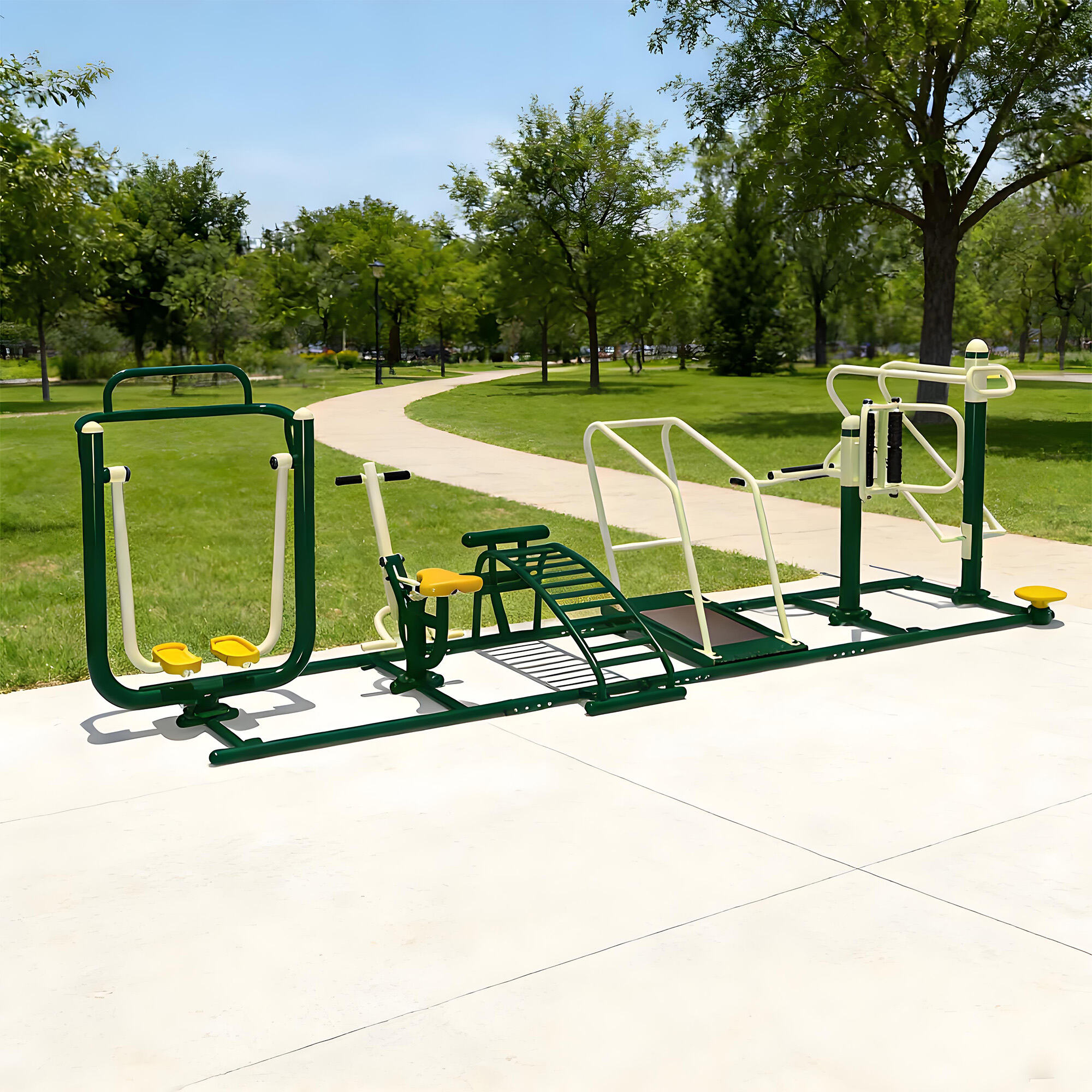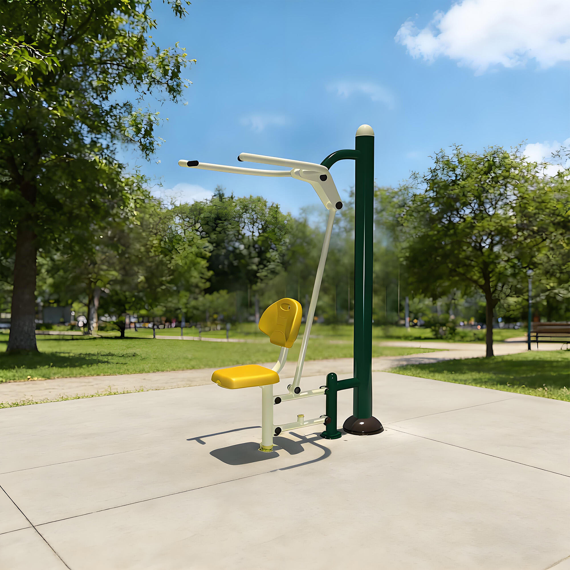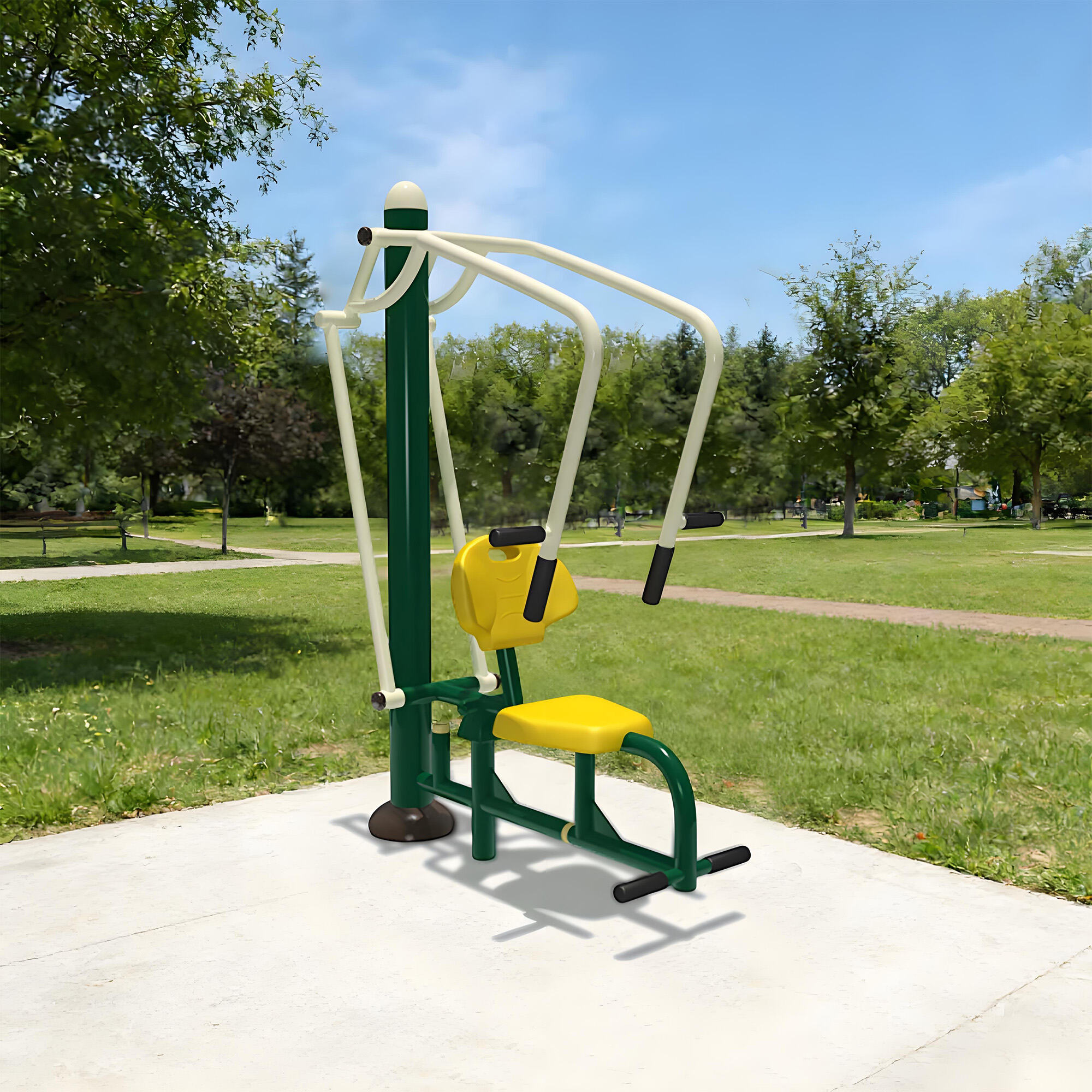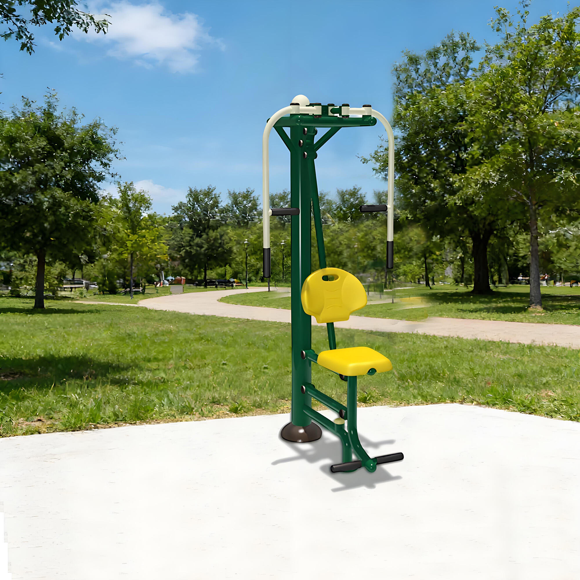 Core components are made of galvanized steel pipes and weather-resistant eco-friendly plastics, with surfaces treated by electrostatic powder coating and multi-layer anti-corrosion processes. They withstand sun, rain, and temperature fluctuations, remaining rust-free, colorfast, and crack-free over long-term outdoor use. Solid craftsmanship ensures structural stability even under frequent use, providing reliable, long-lasting fitness support.