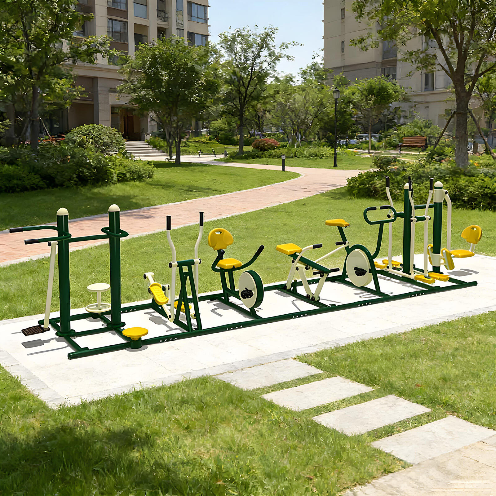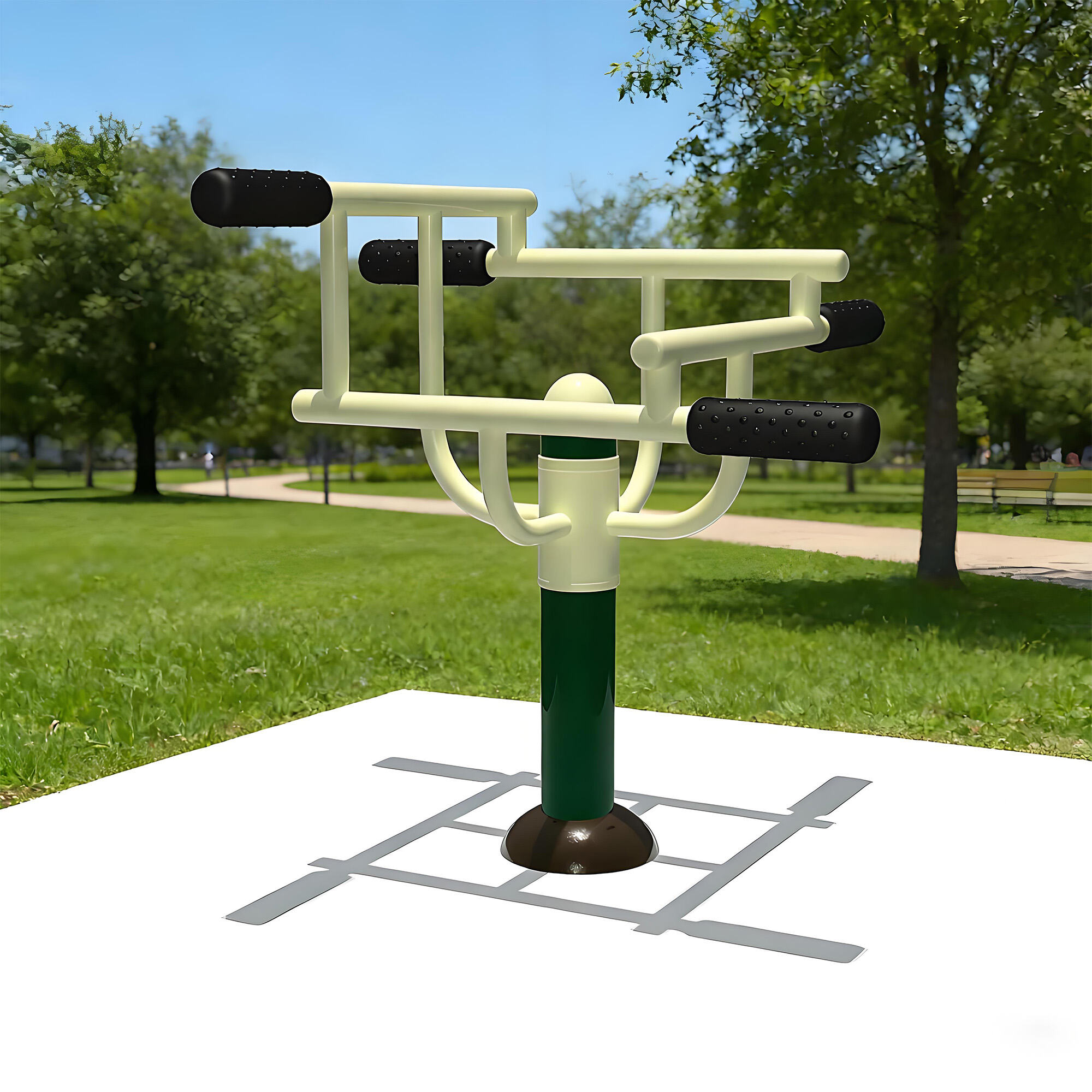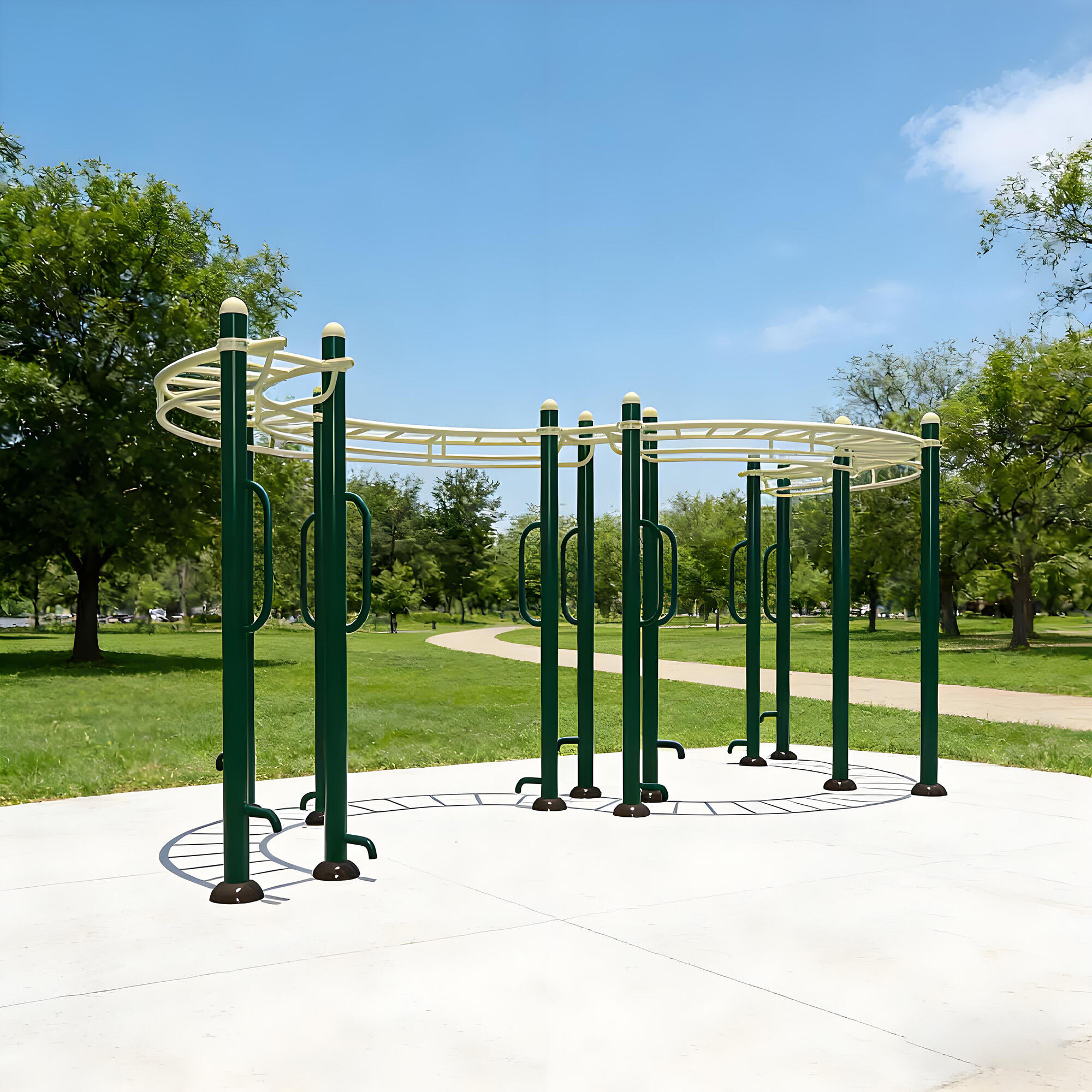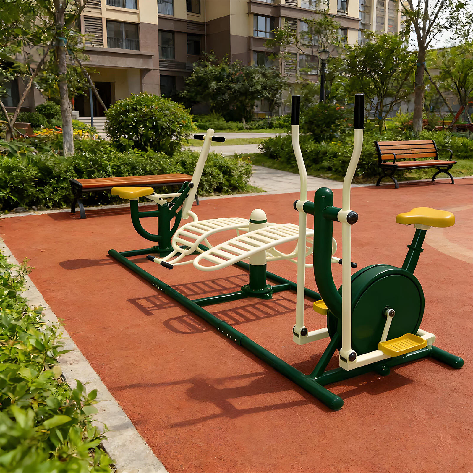 Core components are made of galvanized steel pipes and weather-resistant eco-friendly plastics, with surfaces treated by electrostatic powder coating and multi-layer anti-corrosion processes. They withstand sun, rain, and temperature fluctuations, remaining rust-free, colorfast, and crack-free over long-term outdoor use. Solid craftsmanship ensures structural stability even under frequent use, providing reliable, long-lasting fitness support.