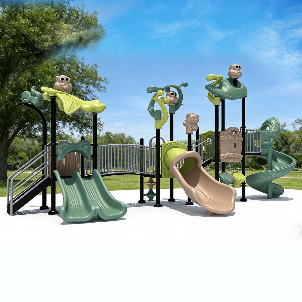 All our equipment uses weather-resistant materials—such as UV-stabilized LLDPE for slides, hot-dip galvanized steel for frames, and water-proof polyester for climbing nets. These materials resist sun fading, rust, and rain damage, ensuring the equipment maintains performance and appearance for 8–10 years even in extreme climates.