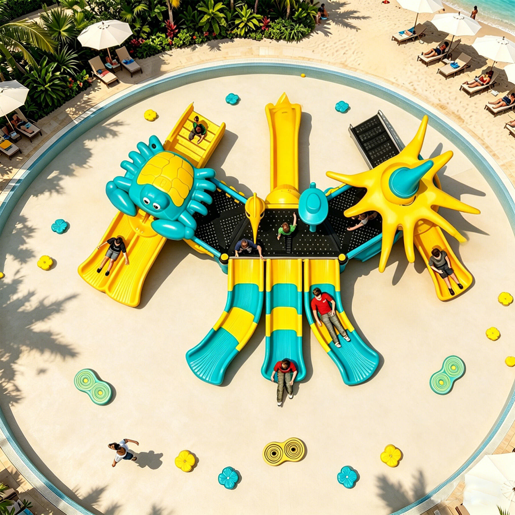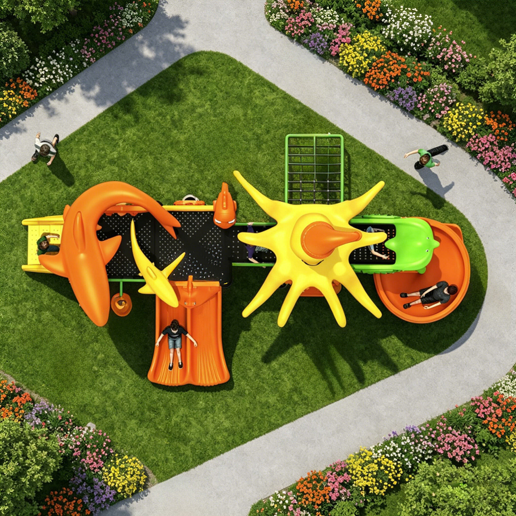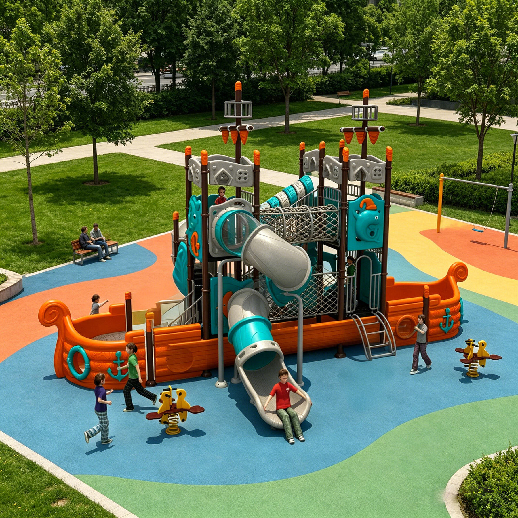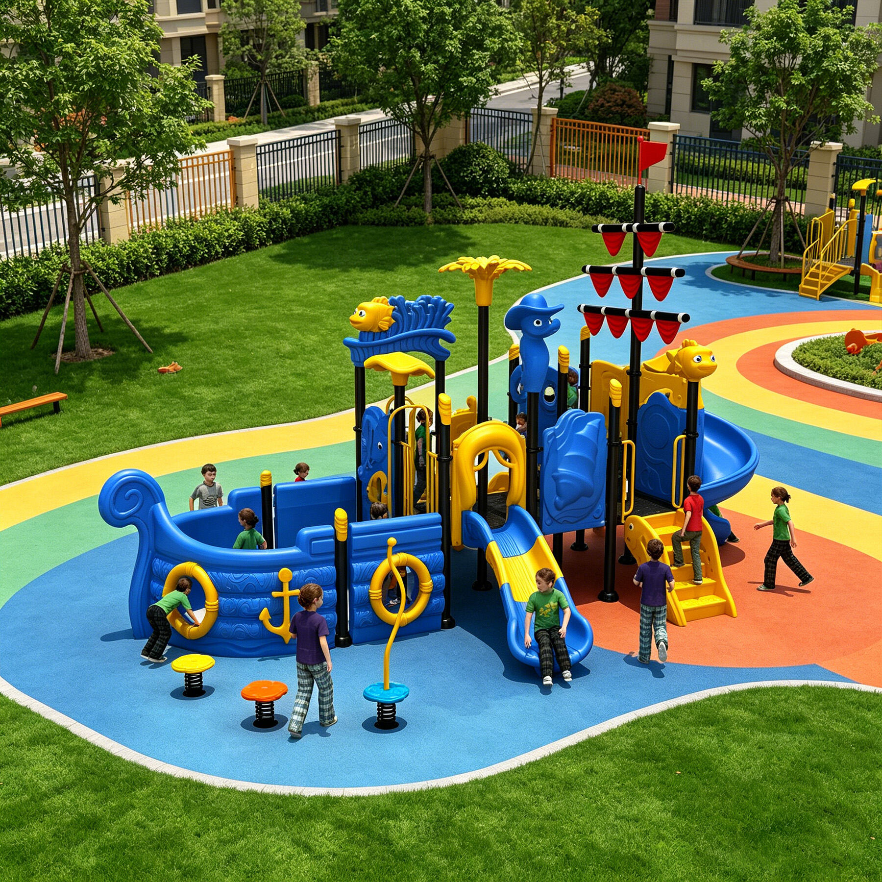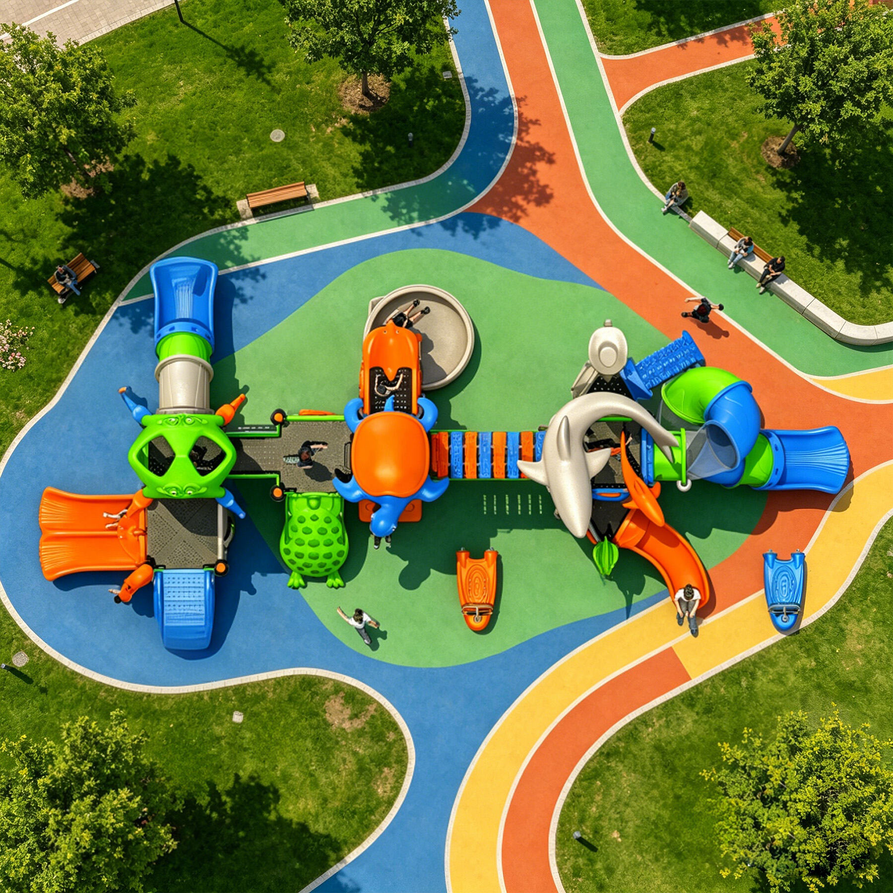 Designed specifically for children, the Ocean Series brings the deep and vibrant underwater world perfectly into playground settings. Featuring classic ocean-themed cartoon characters such as sharks, starfish, seahorses, swordfish, turtles, dolphins, and octopuses, each detail is cute, lively, and full of childlike charm.