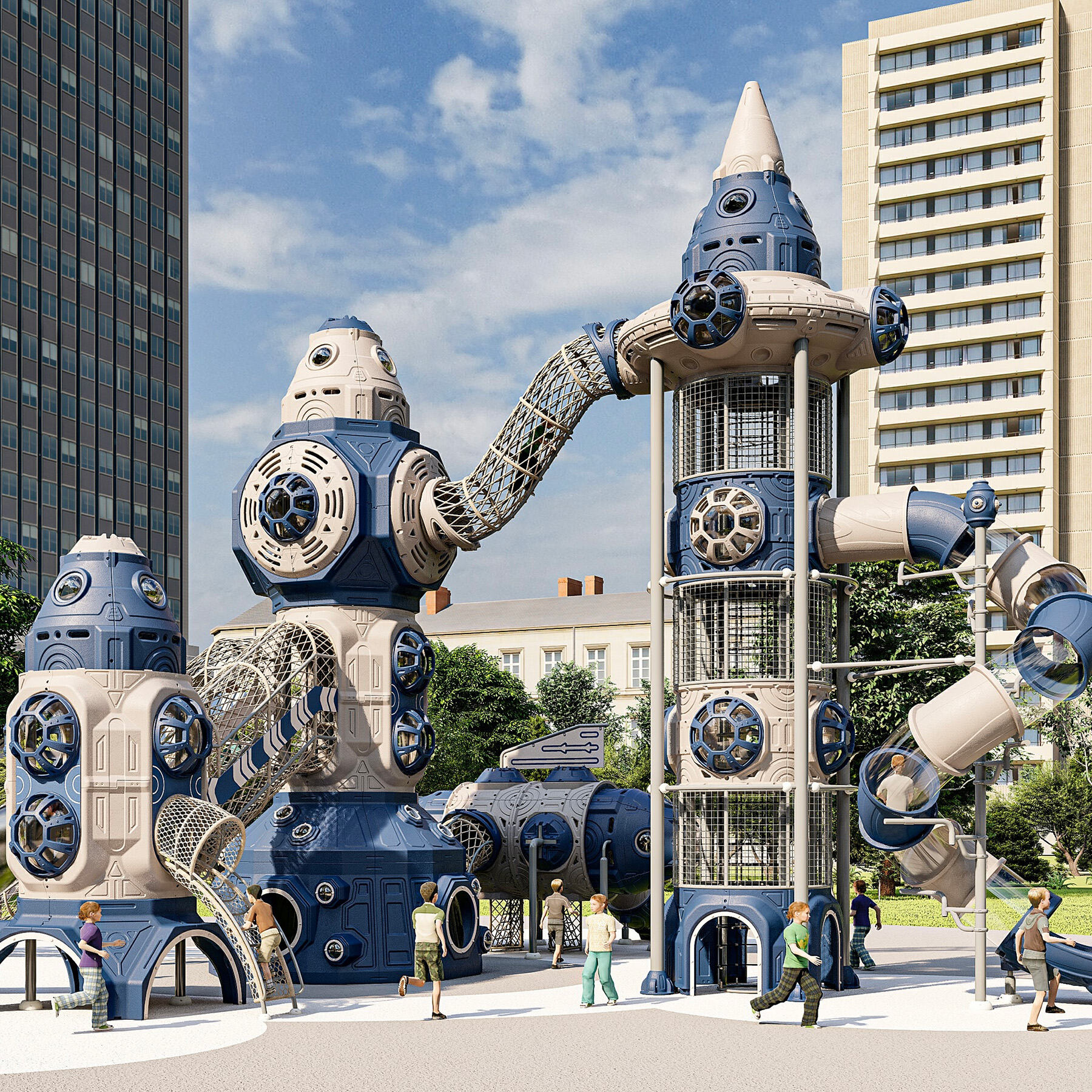 The Space Rocket Series goes beyond a simple slide by cleverly combining climbing frames, climbing nets, stepping stones, and slides. The climbing frame and net designs are especially eye-catching. Sliding down from the rocket cabin feels like stepping through a gateway to the stars, allowing children to unleash their imagination of space while experiencing the thrill of speed and the joy of accomplishment.